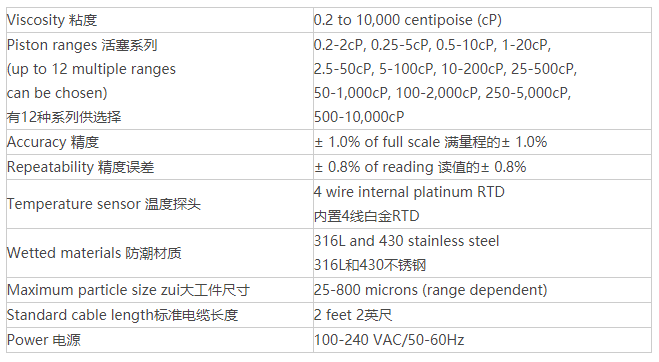 Cambridge Viscosity VISCOlab 4000粘度計規格說明: