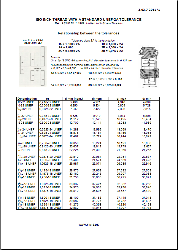 UNEF美制精細(xì)螺紋尺寸說明如下: