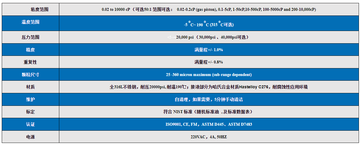 粘度計(jì)(VISCOlab PVT+ 高溫高壓粘度計(jì))規(guī)格參數(shù):